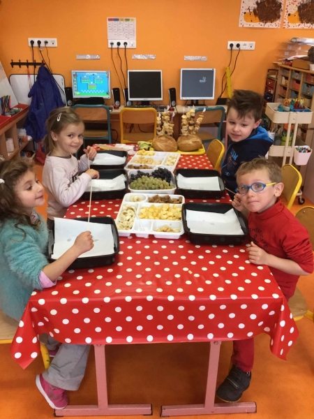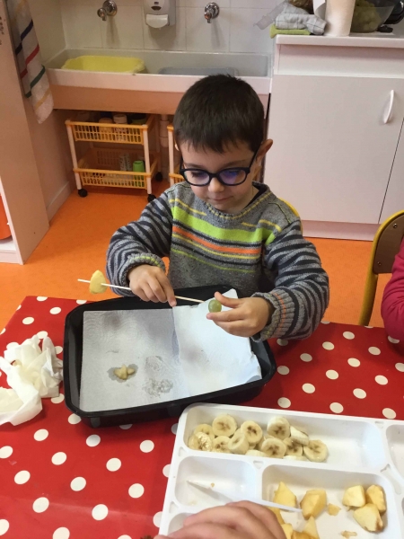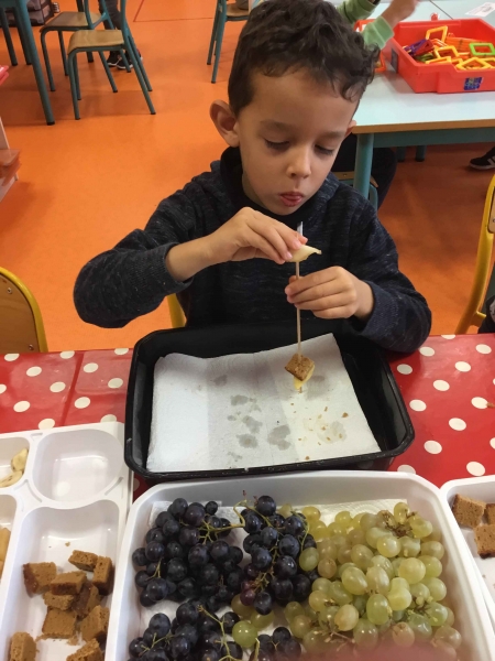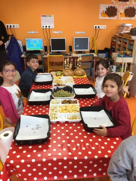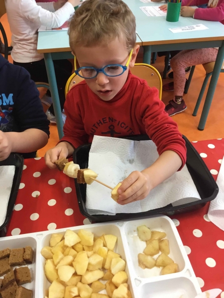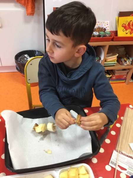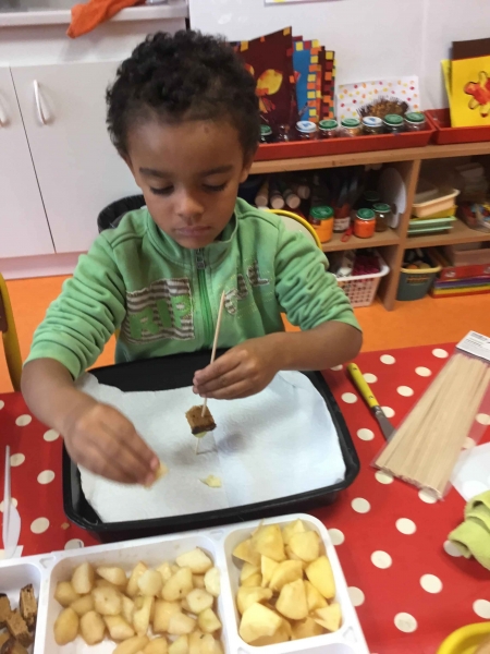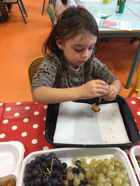 Nous avons fait les piquants de M. et Mme Hérisson avec des fruits d’automne. Regardez-nous au travail avec ce diaporama !