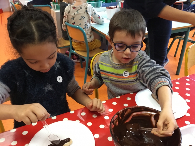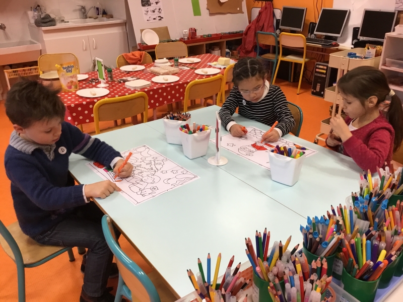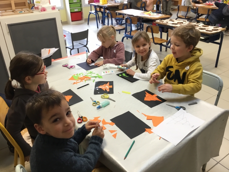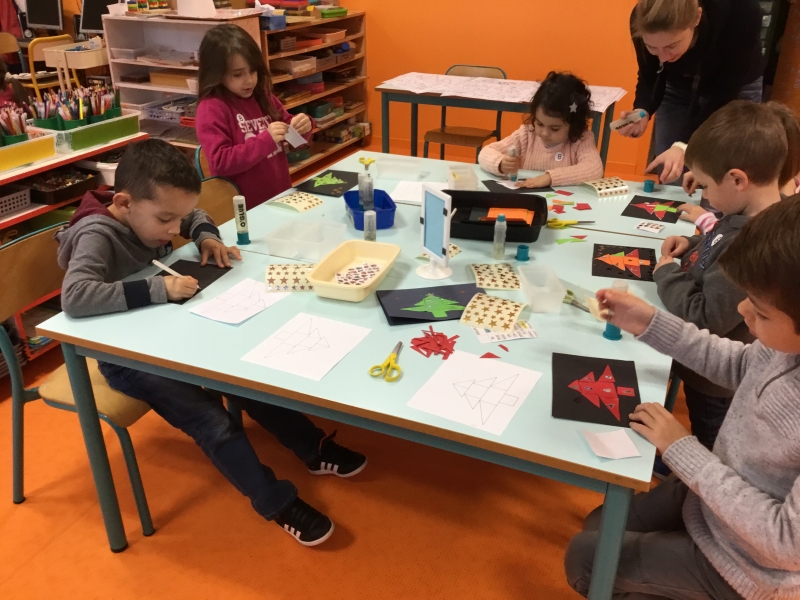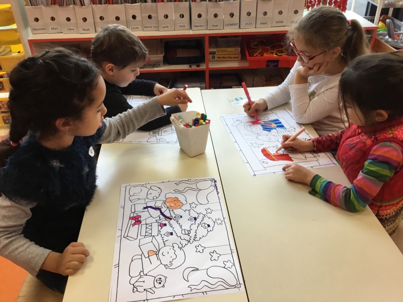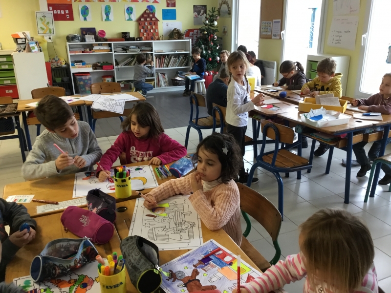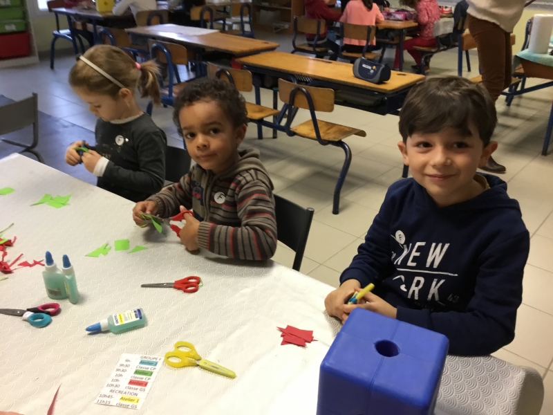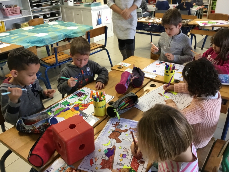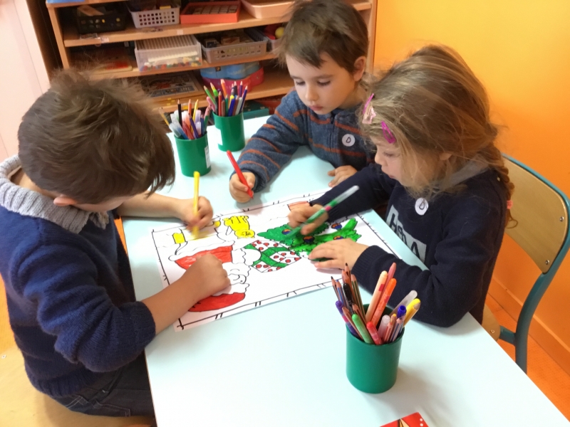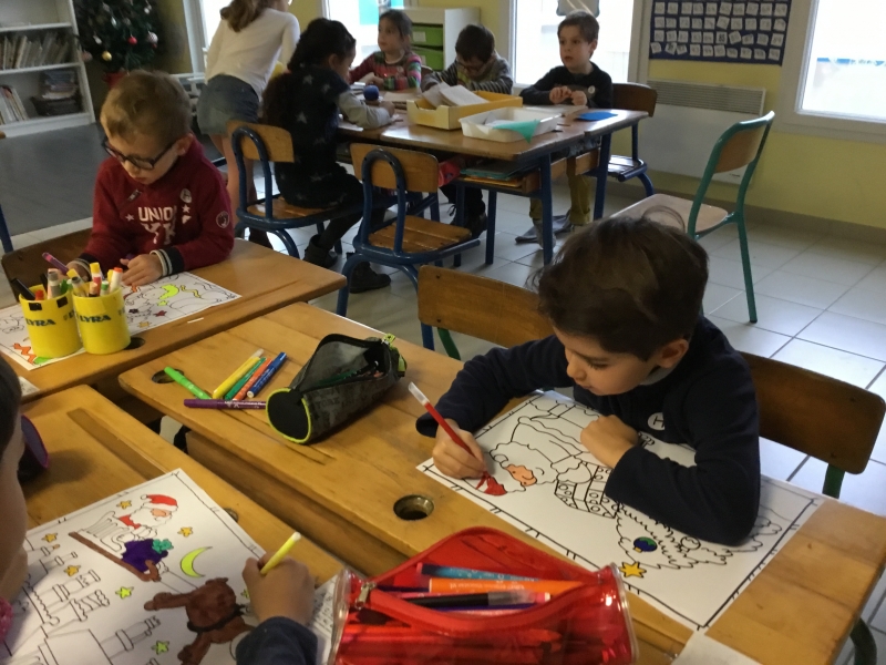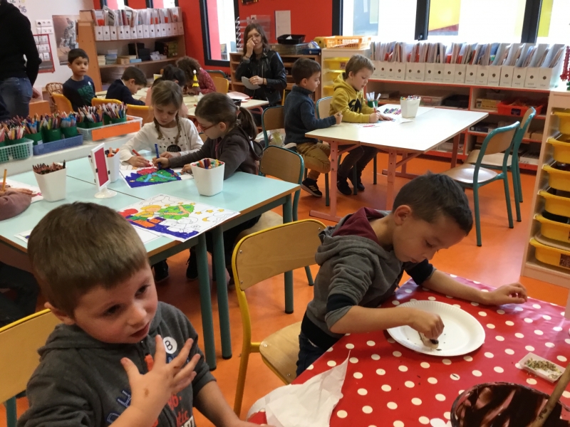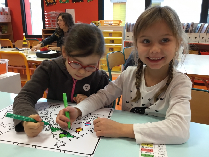 Les enfants de MS et GS ont retrouvé leurs copains de la classe de CP pour une matinée d’échange et de partage autour d’ateliers de Noël.