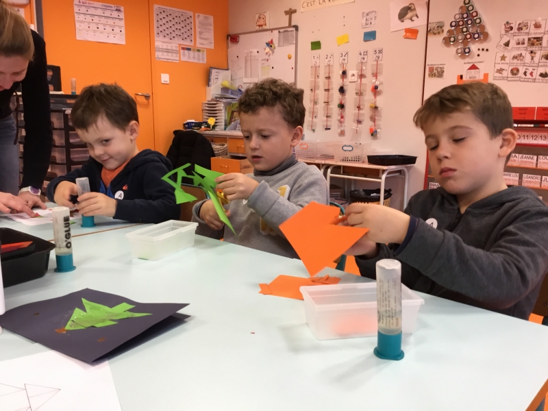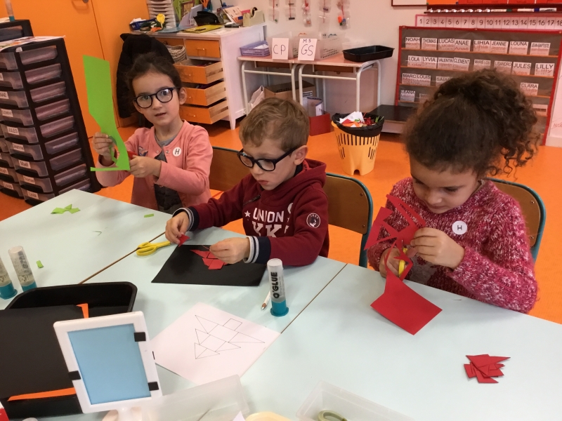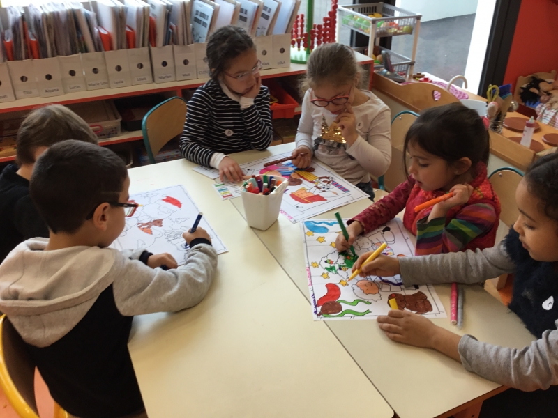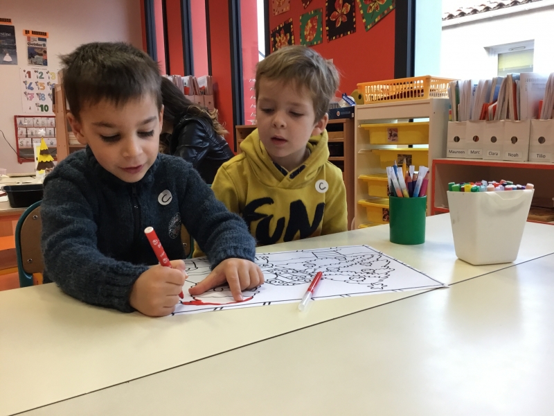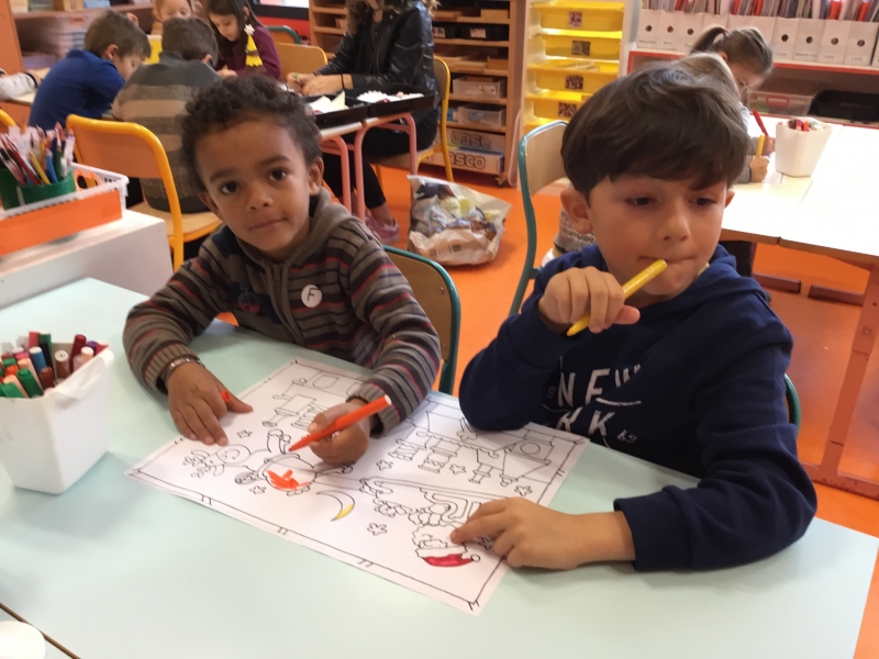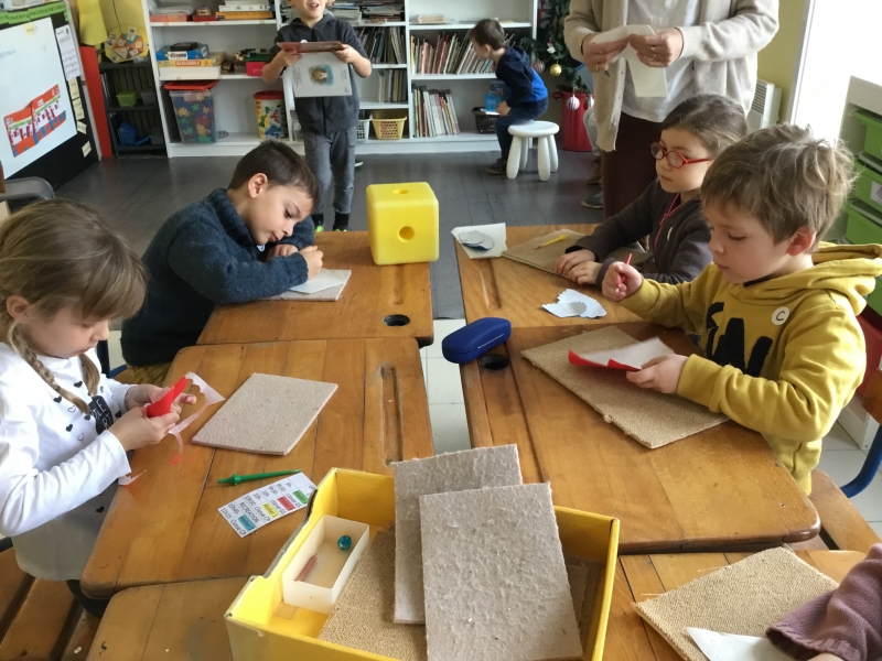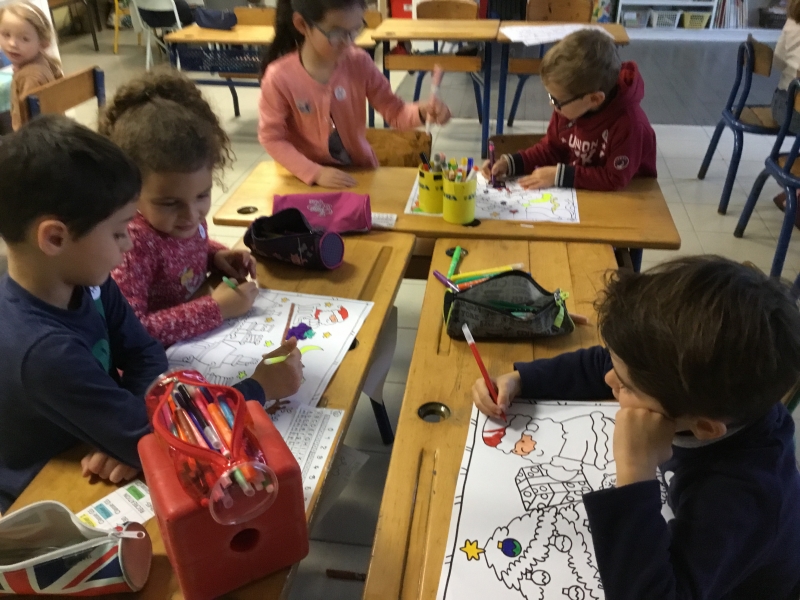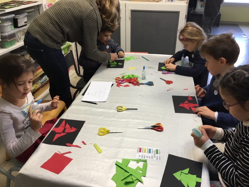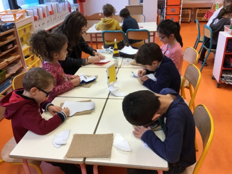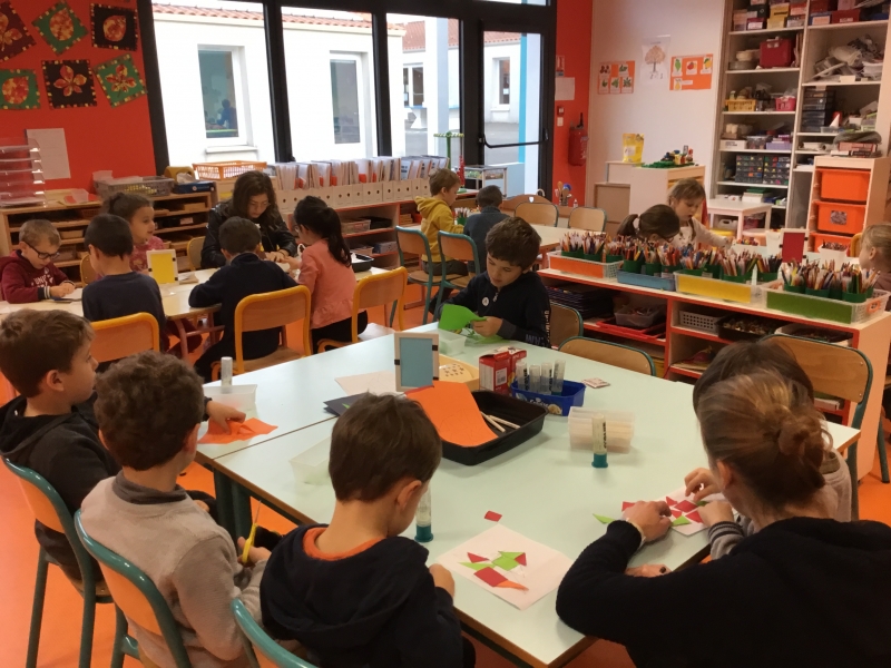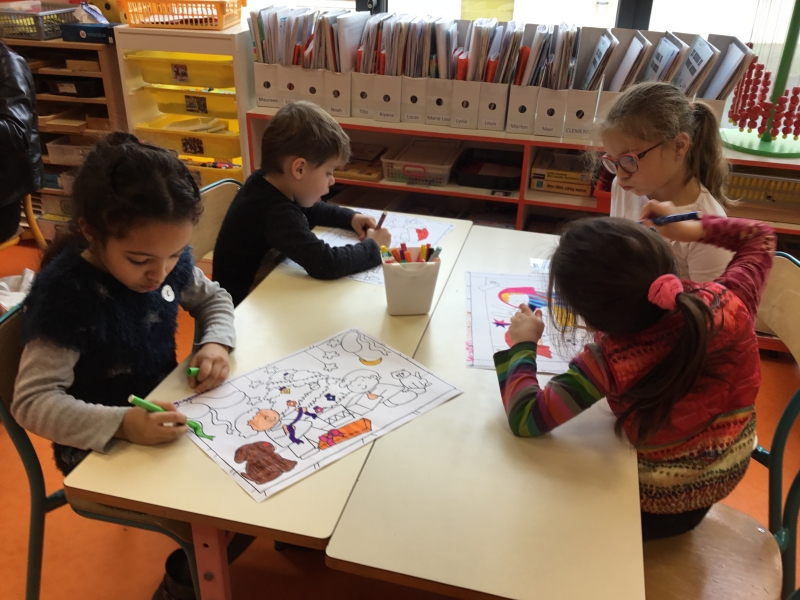 Les enfants de MS et GS ont retrouvé leurs copains de la classe de CP pour une matinée d’échange et de partage autour d’ateliers de Noël.