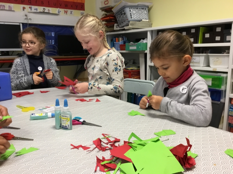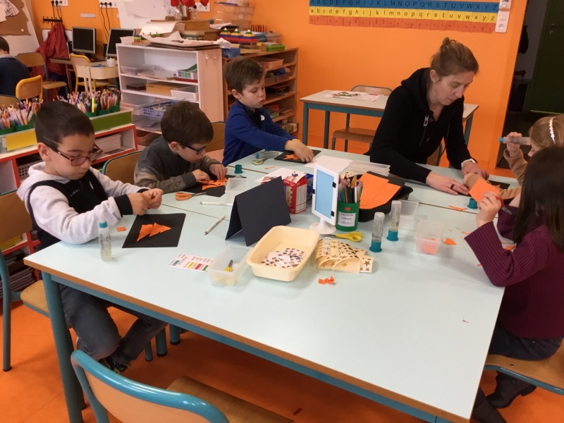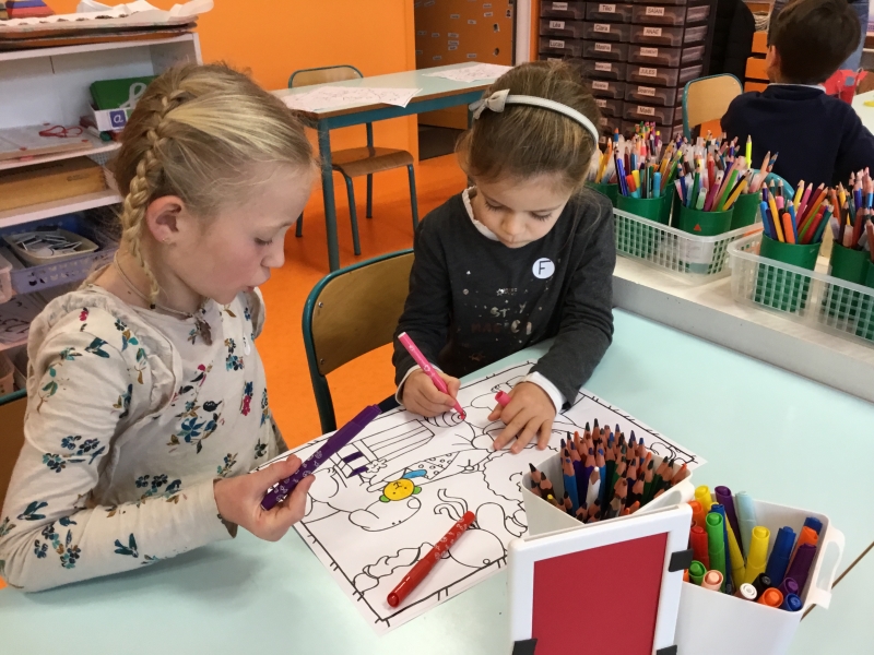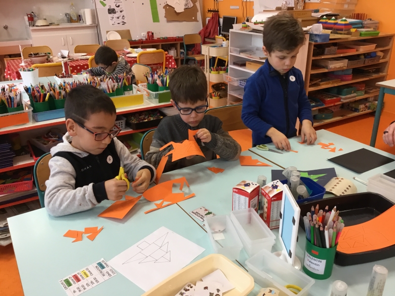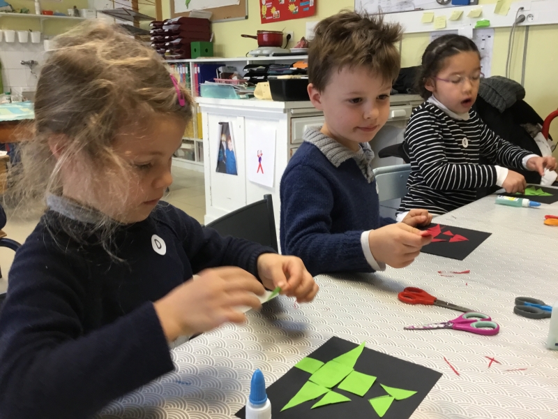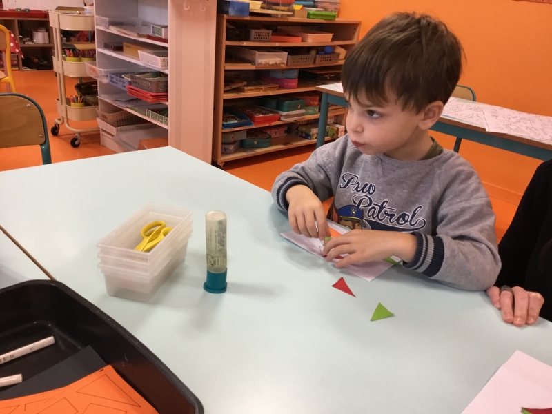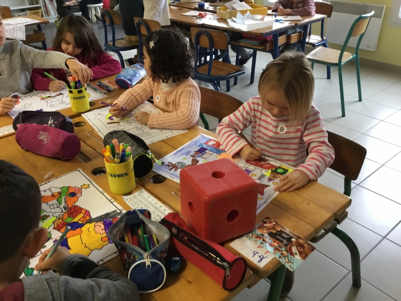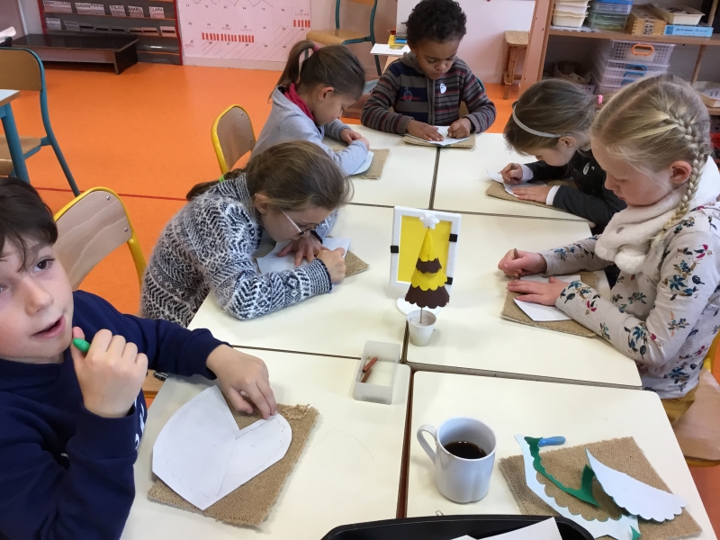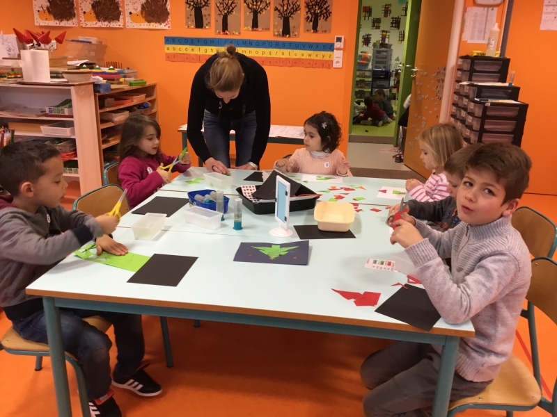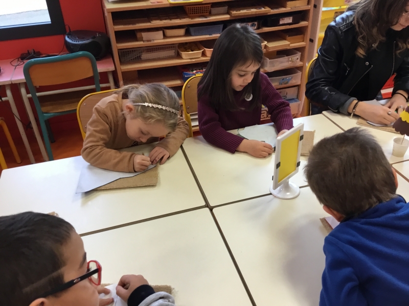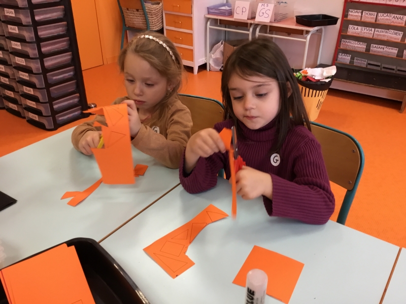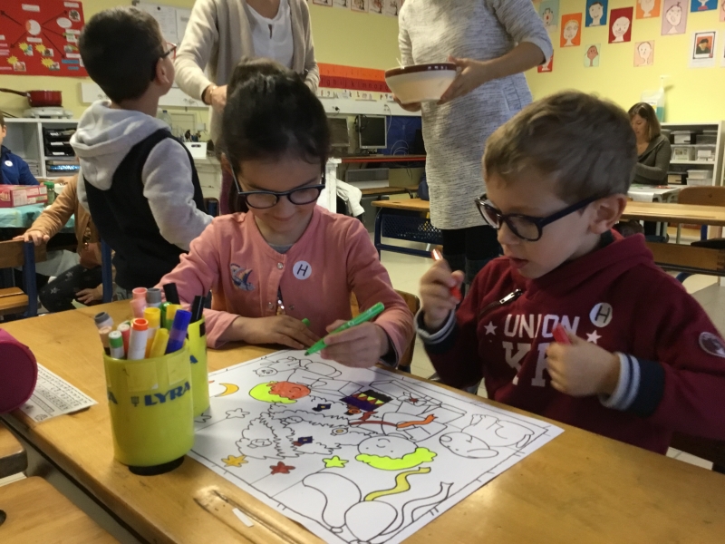 Les enfants de MS et GS ont retrouvé leurs copains de la classe de CP pour une matinée d’échange et de partage autour d’ateliers de Noël.