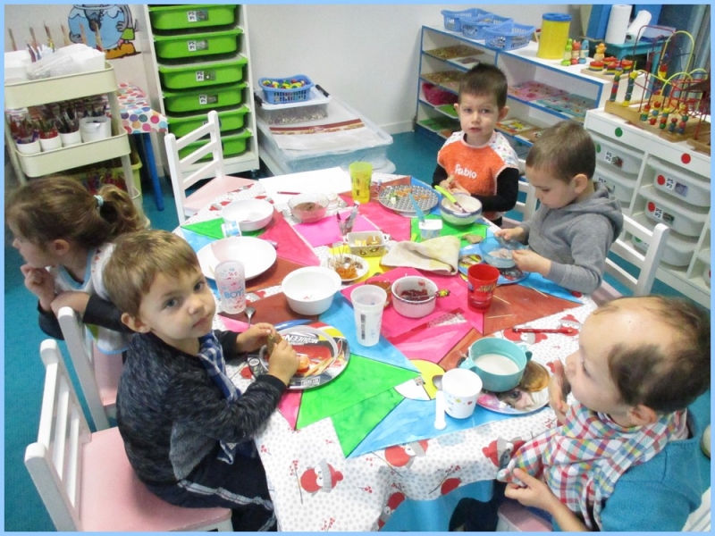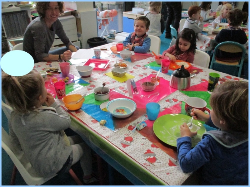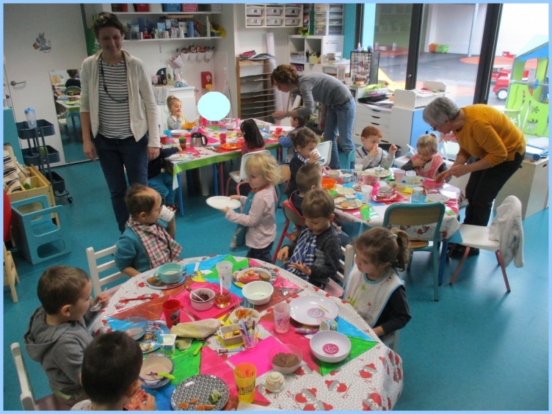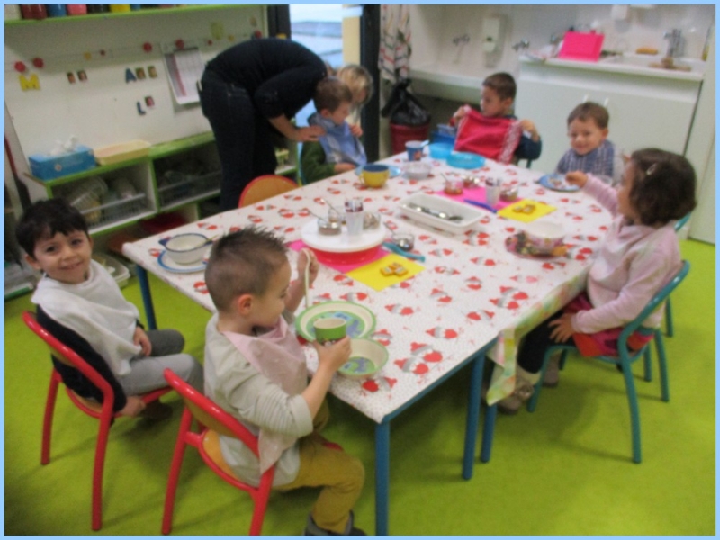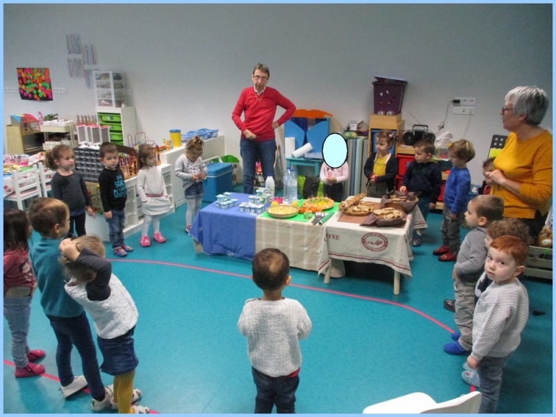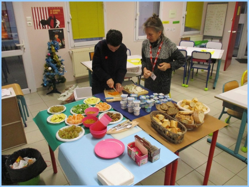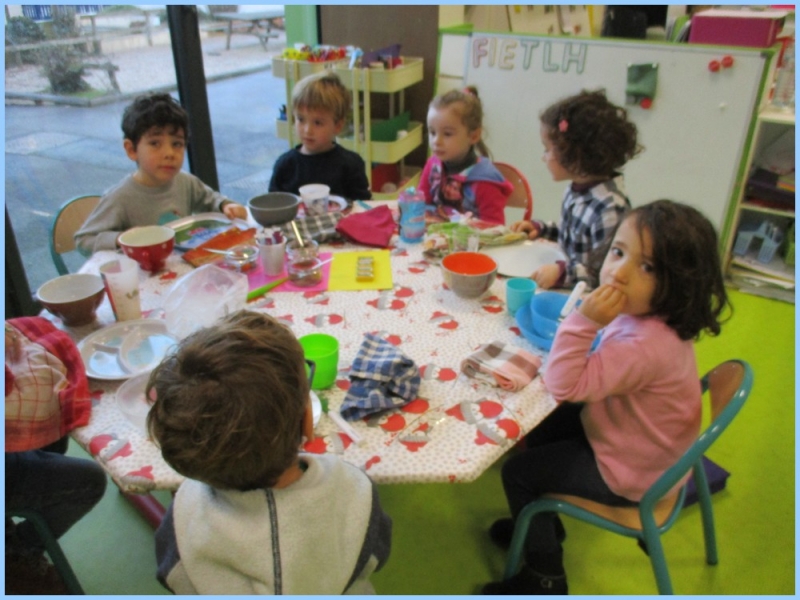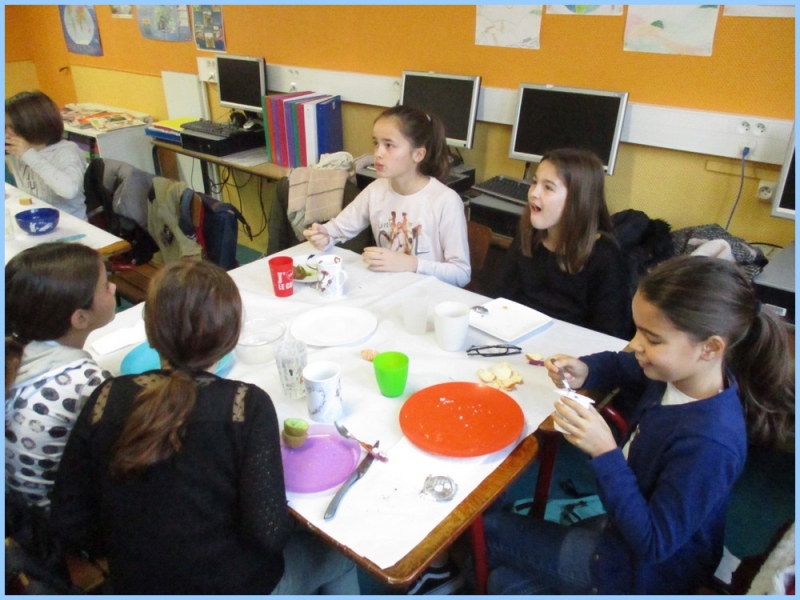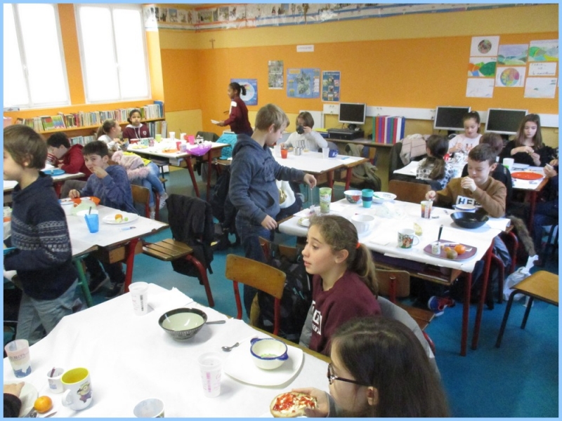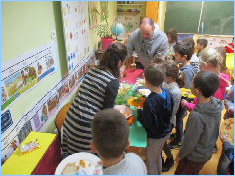 Ce petit déjeuner commun a permis de concrétiser leurs apprentissages sur l’équilibre du premier repas de la journée. Les enfants ont été placés en situation de choix. En effet, un buffet présentant un grand nombre d’aliments des 6 groupes alimentaires nécessaires (produits laitiers, produits céréaliers, fruits, confiture ou miel, beurre, boissons chaudes ou froides) a été préparé dans chacune des 10 classes.