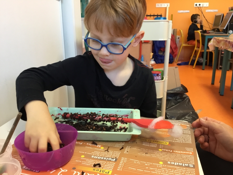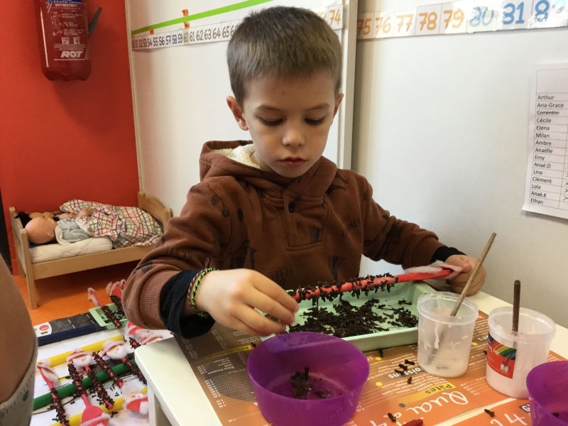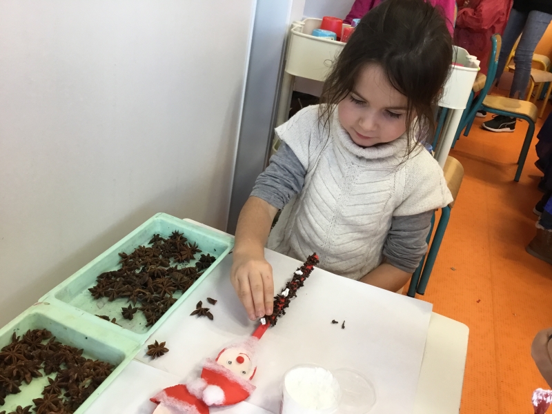 Pour le marché de Noël, les élèves de MS/GS ont fabriqué un père Noël aromatique.