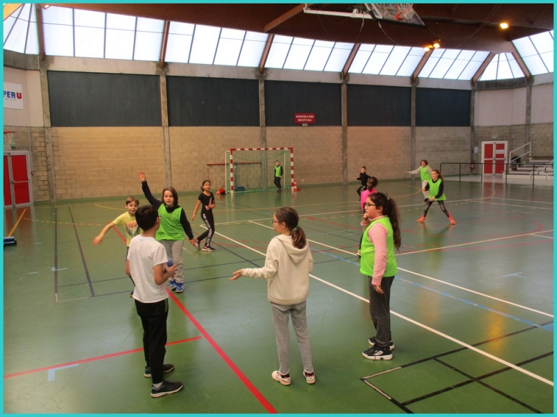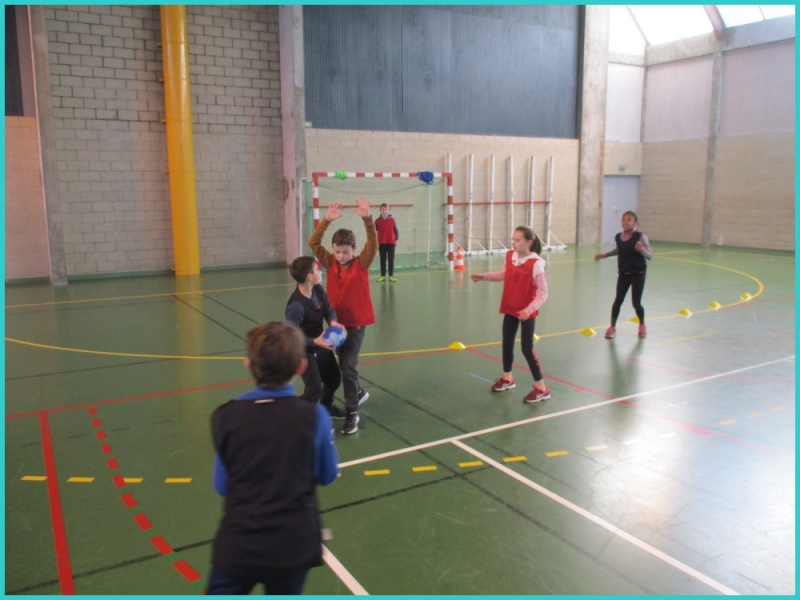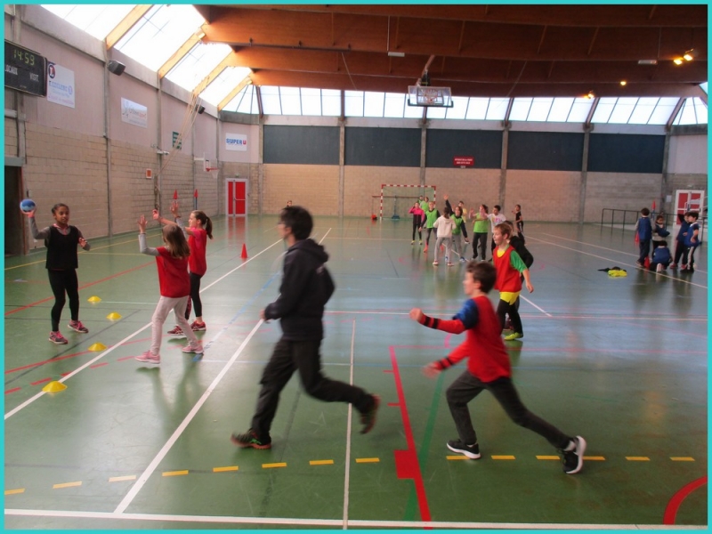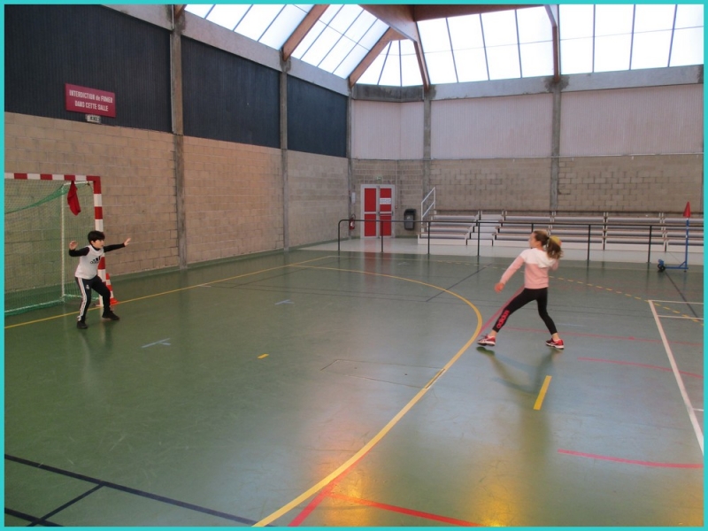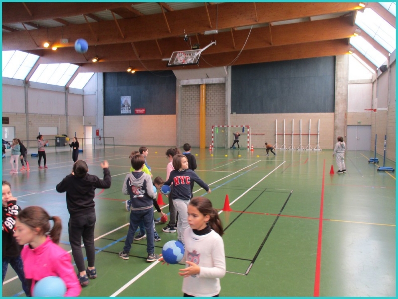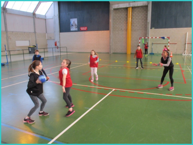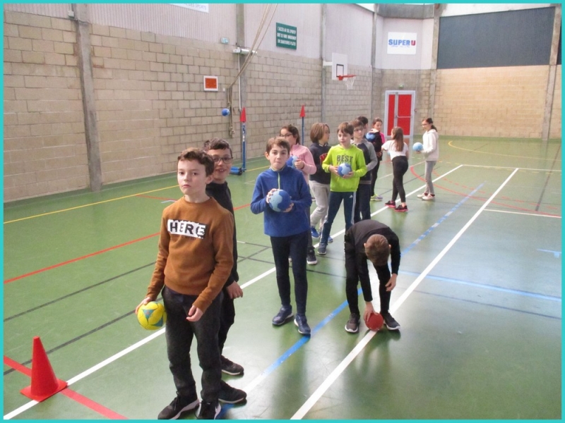 Depuis quelques semaines, en sport, la classe des CM2 vit un cycle HANDBALL avec l’éducateur sportif Nicolas.