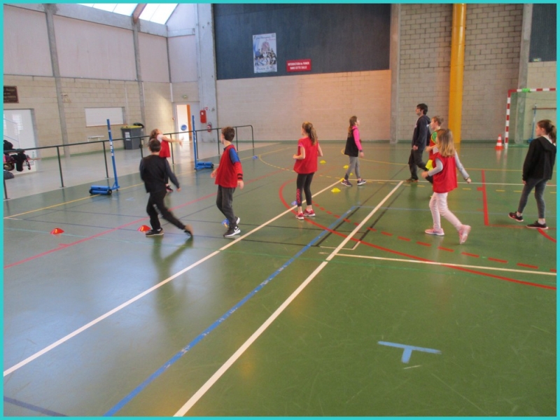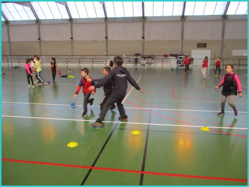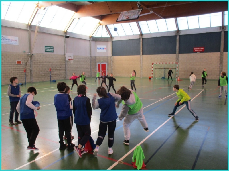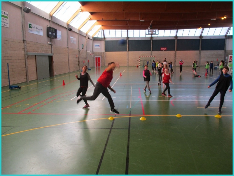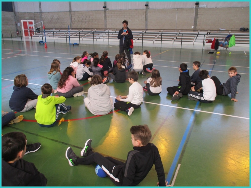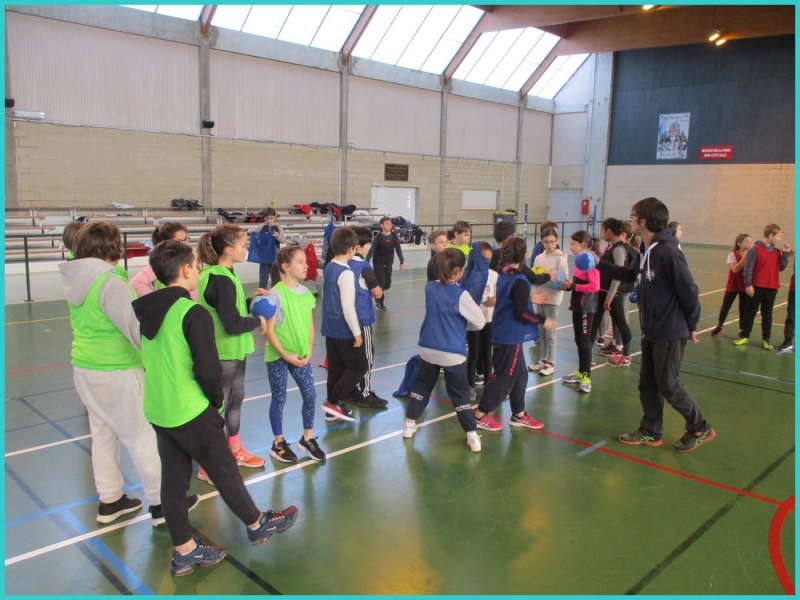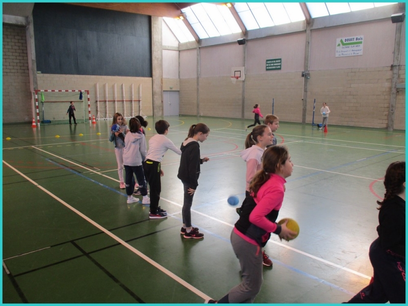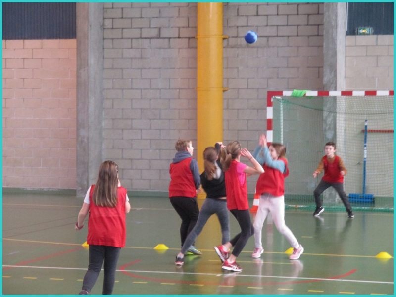 Depuis quelques semaines, en sport, la classe des CM2 vit un cycle HANDBALL avec l’éducateur sportif Nicolas.