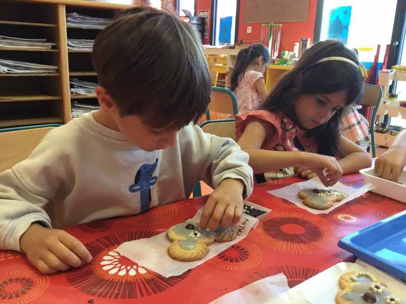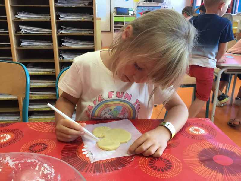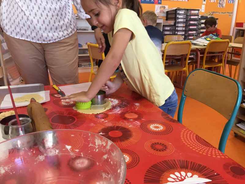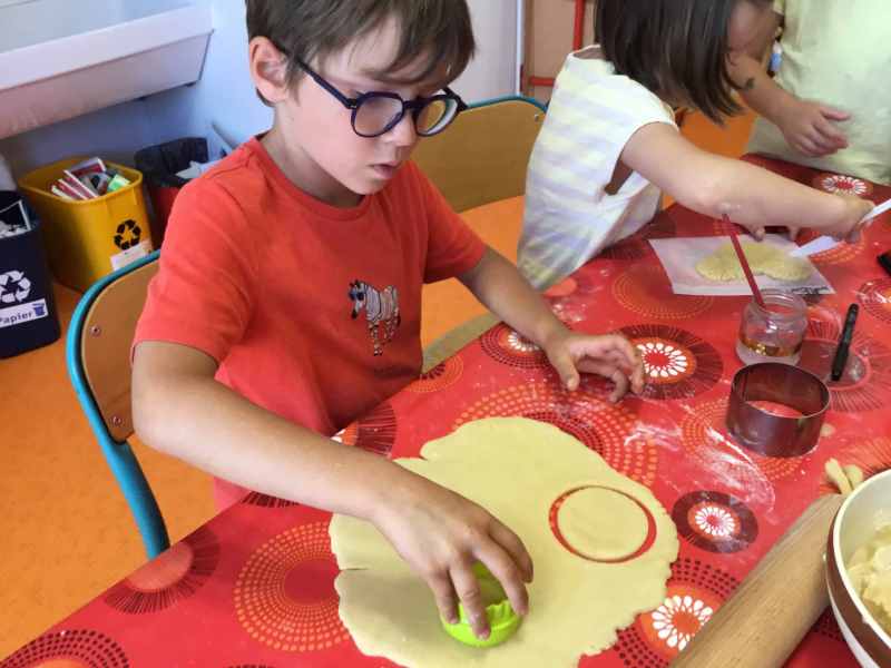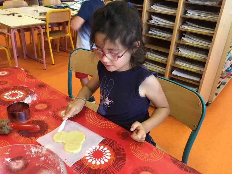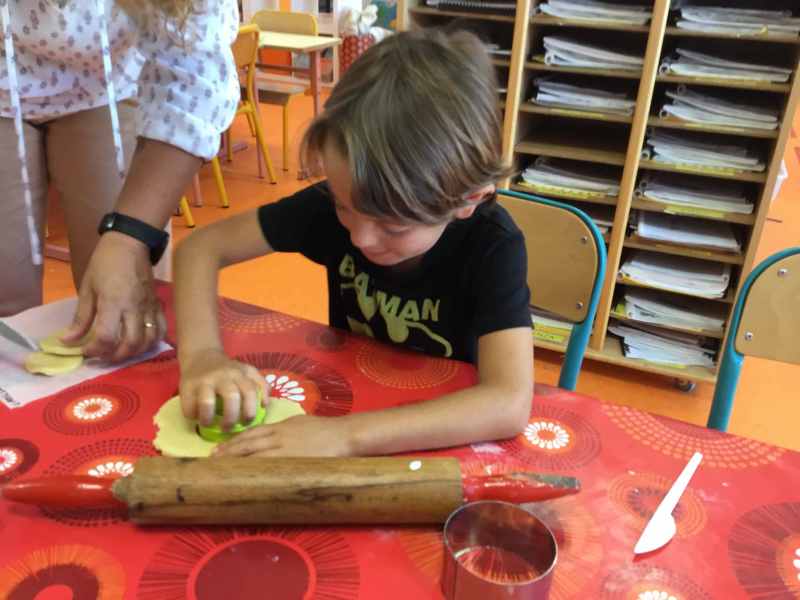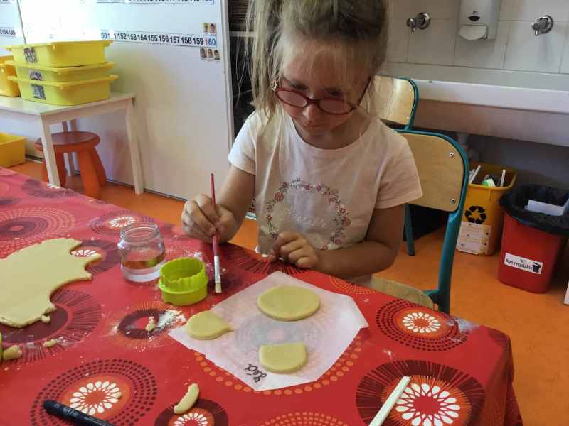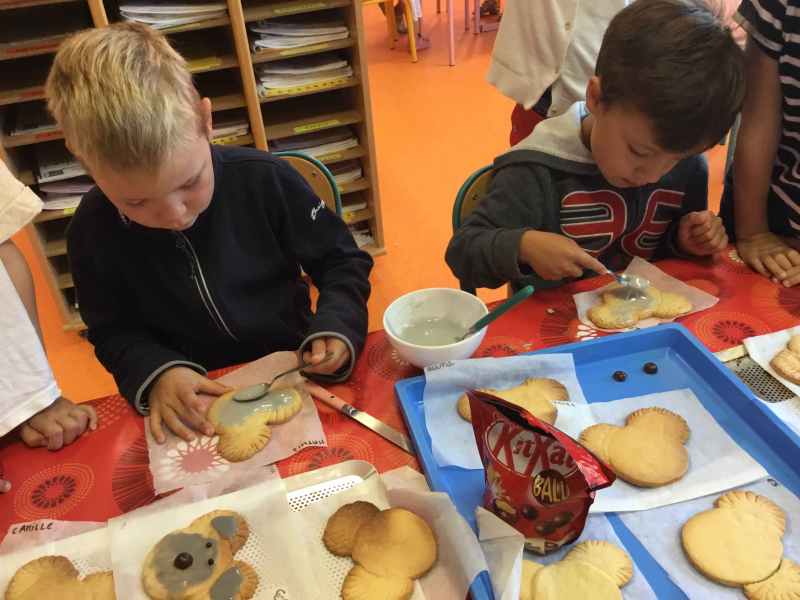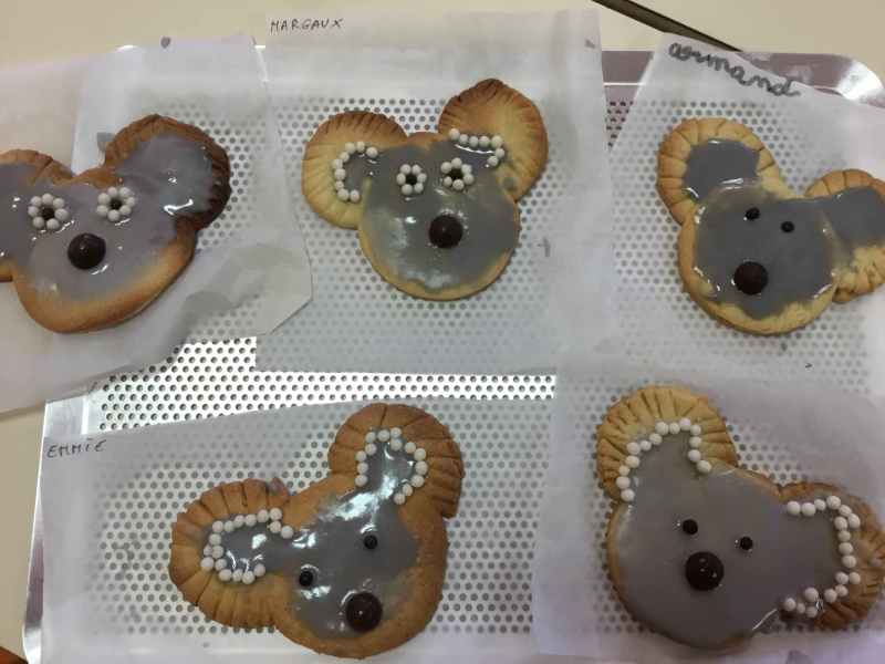 Etape 1: réalisation de la pâte sablée, découpe avec les emporte-pièces puis réalisation de son koala.