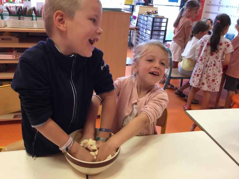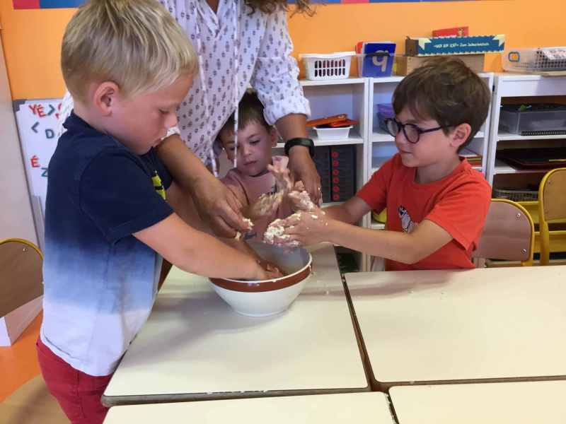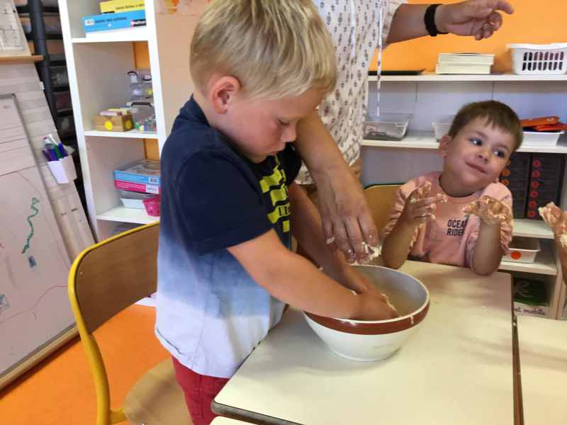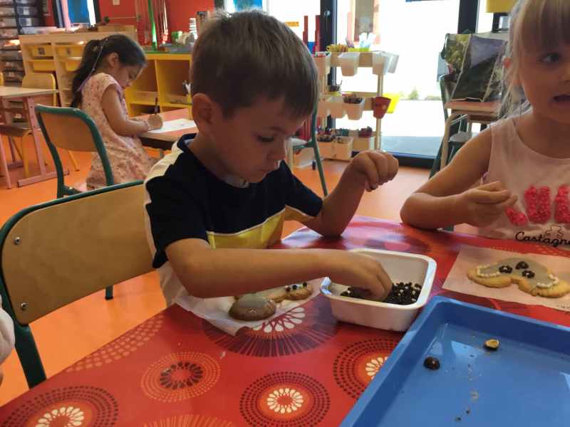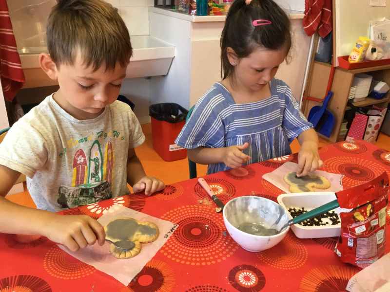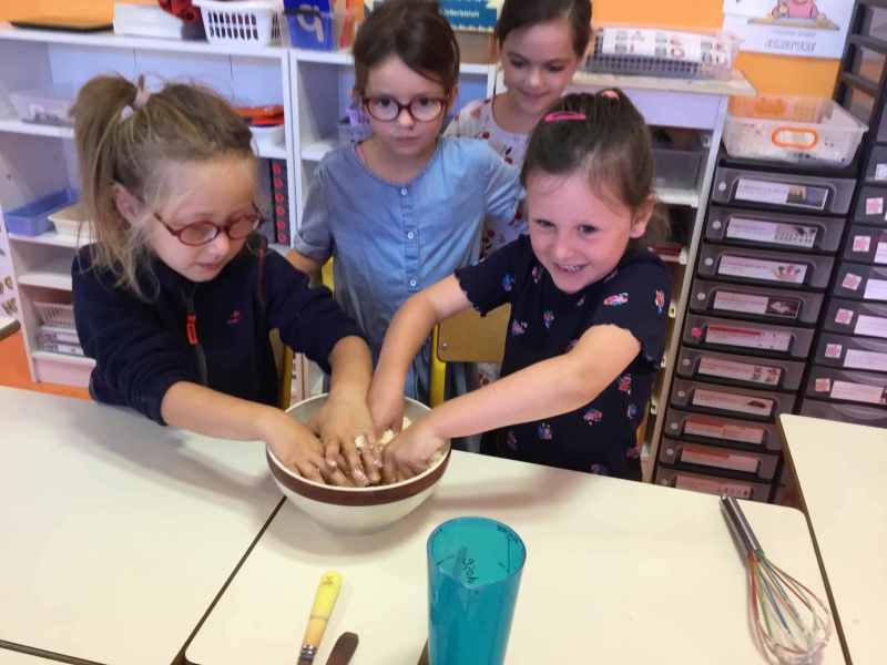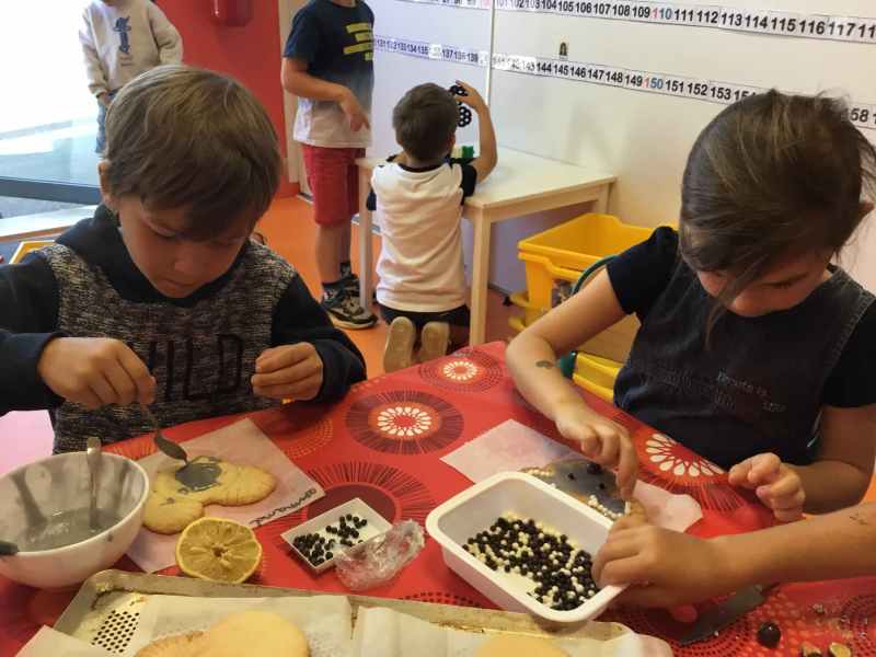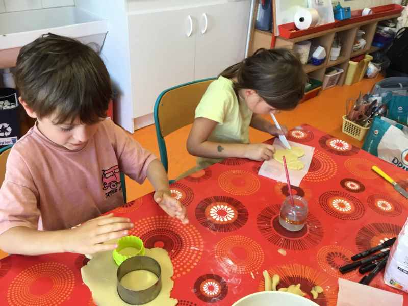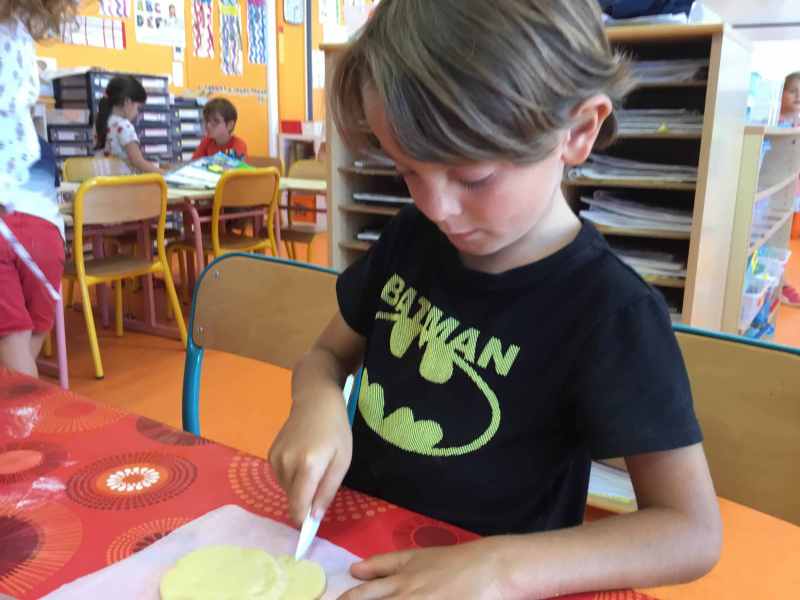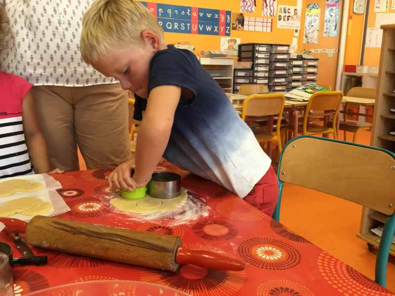 Etape 1: réalisation de la pâte sablée, découpe avec les emporte-pièces puis réalisation de son koala.