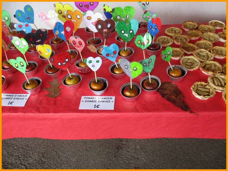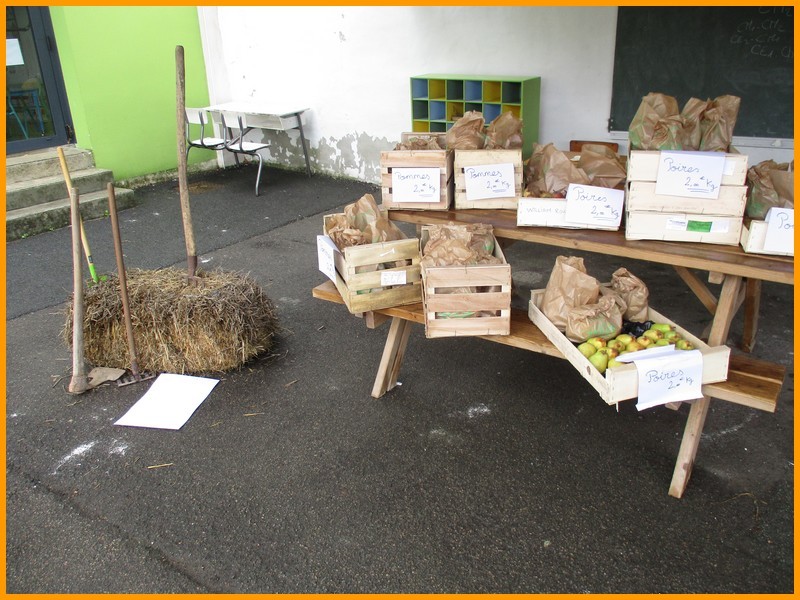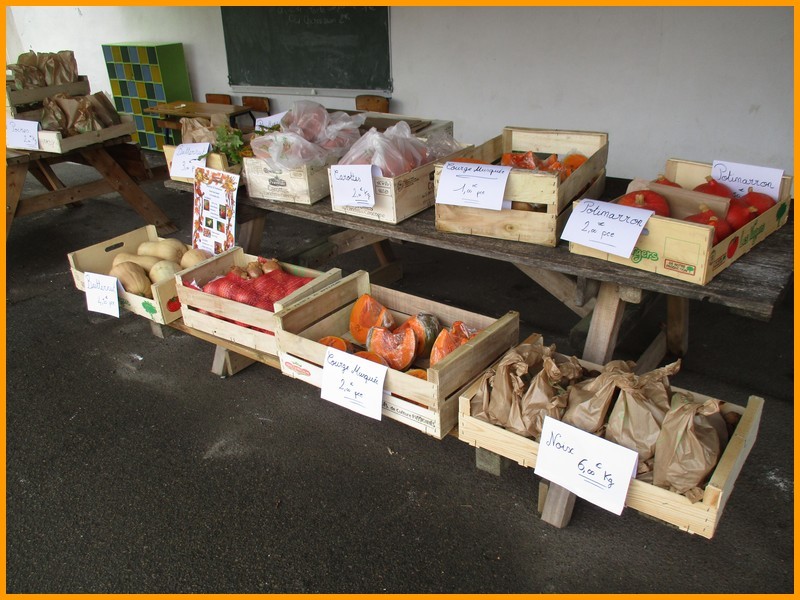 Des productions culinaires ou d’objets fabriqués par les enfants et des mamans de l’APEL étaient proposés à la vente, ainsi que des fruits et légumes frais provenant des Vergers de Vendée : courge musquée, potimarron, courge Butternut, carottes, oignons jaunes, pommes, poires et noix. Chacun a pu faire son marché, sous une météo finalement clémente et douce.