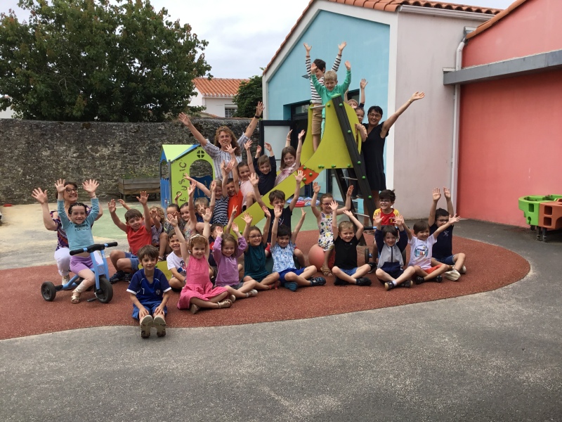Nous avons fait une dernière photo de classe dans la cour en souvenir de cette belle année passée ensemble.